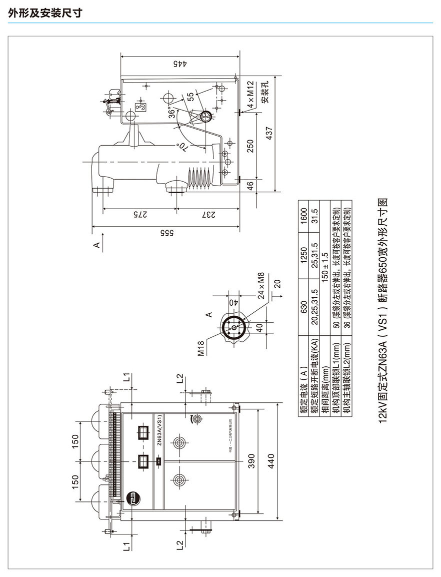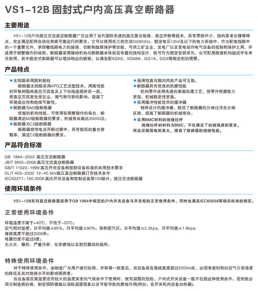 VS1-12KV(B)固封式户内高压真空断路器