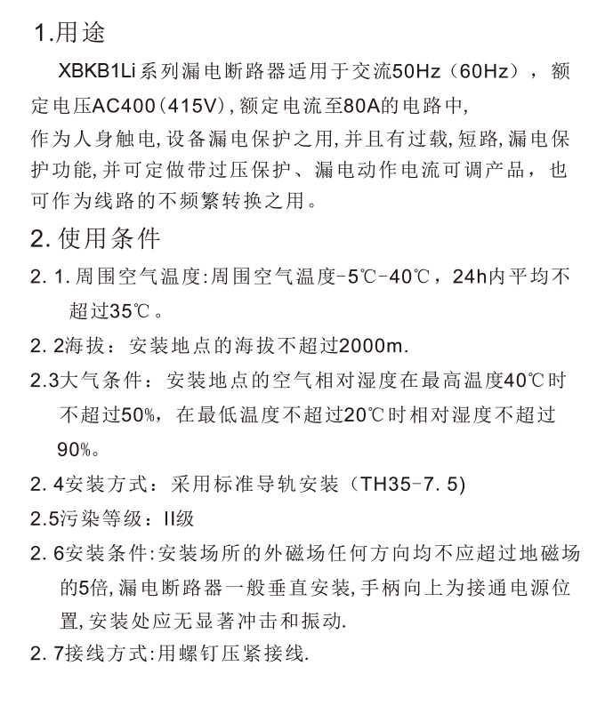 XBKB1LE剩余电流动作断路器