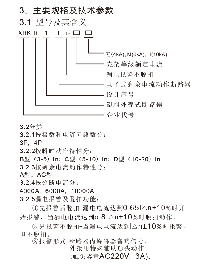 XBKB1Li小型漏电报警不脱扣断路器