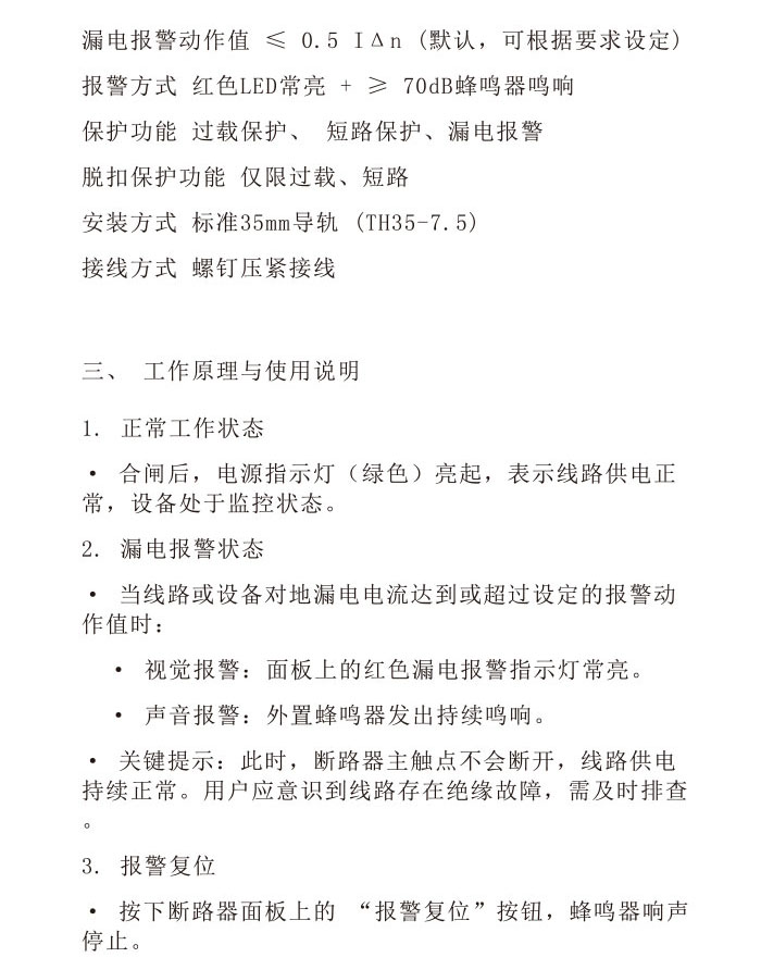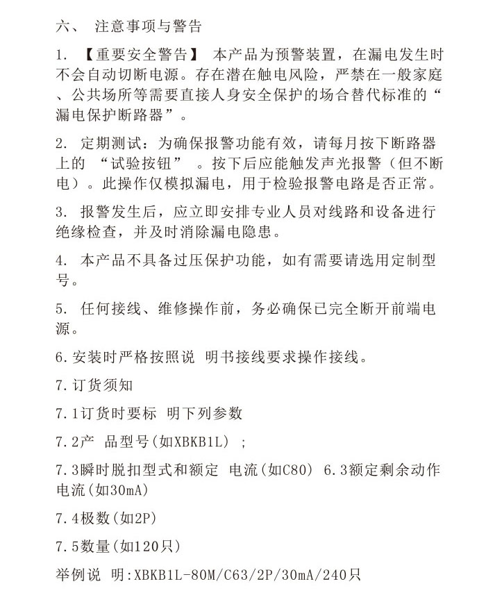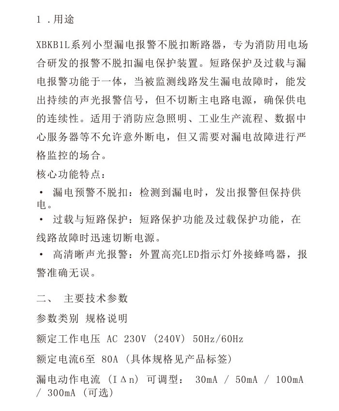 XBKB1L小型漏电报警不脱扣断路器