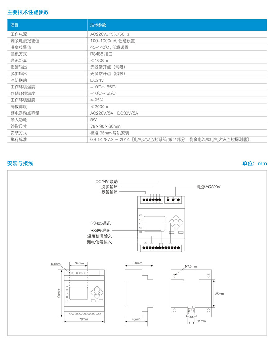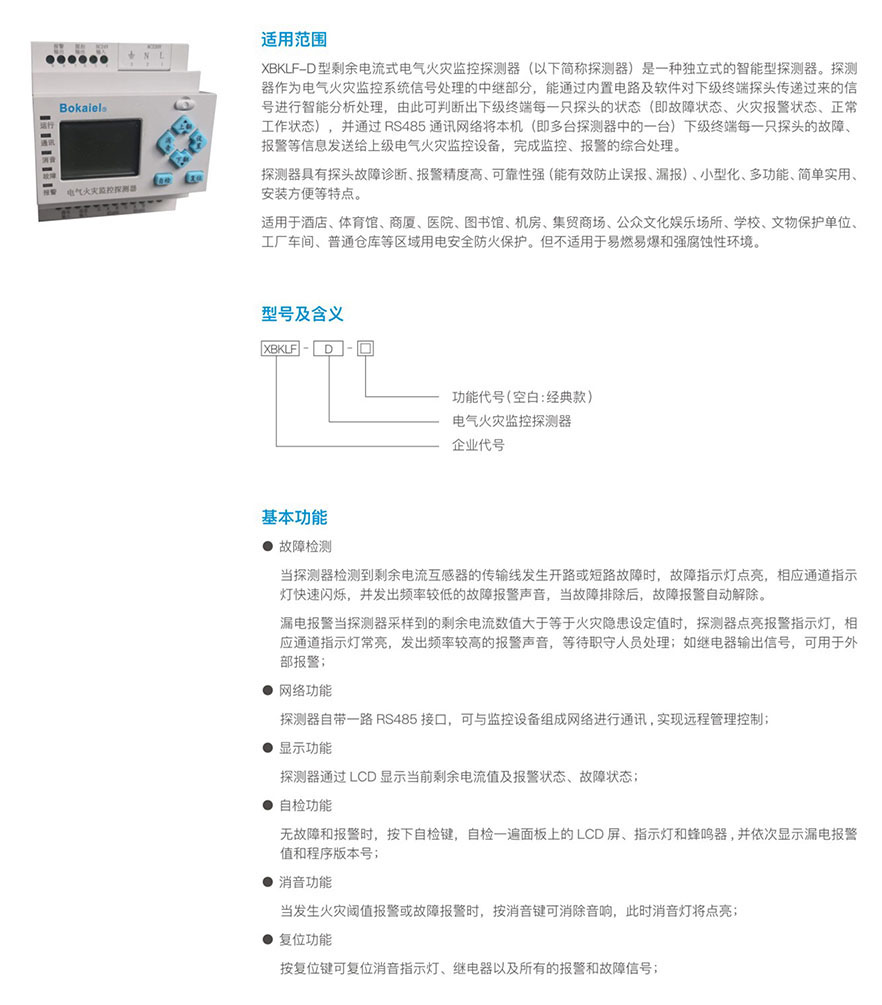 XBKLF-D剩余电流式电气火灾监控探测器