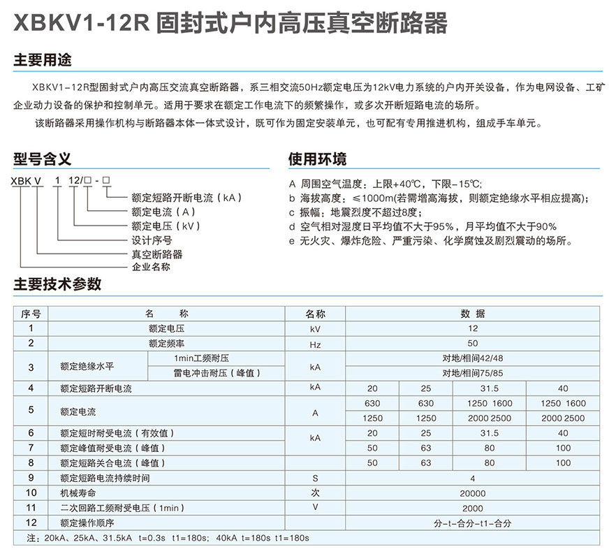 XBKV1-12KV(R)固封式户内高压真空断路器
