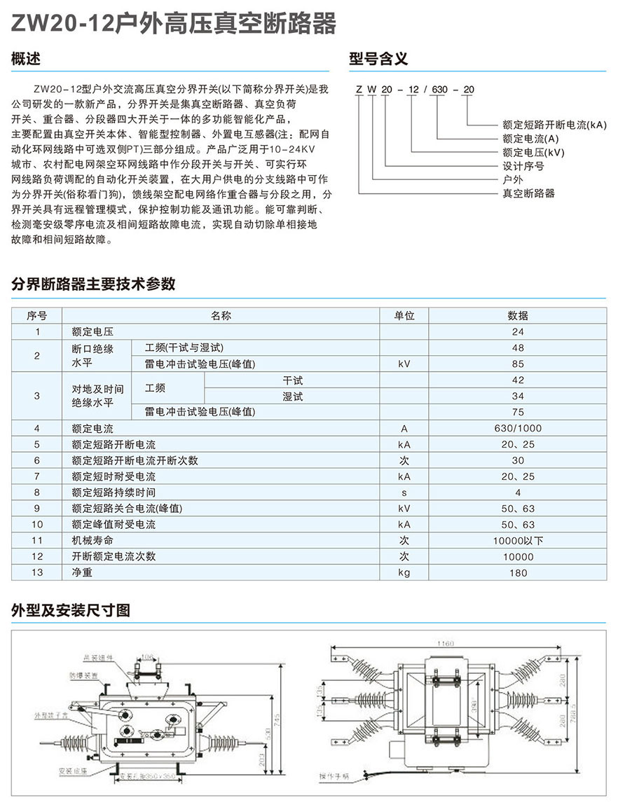 XBKW0(ZW20-12)户外高压真空断路器