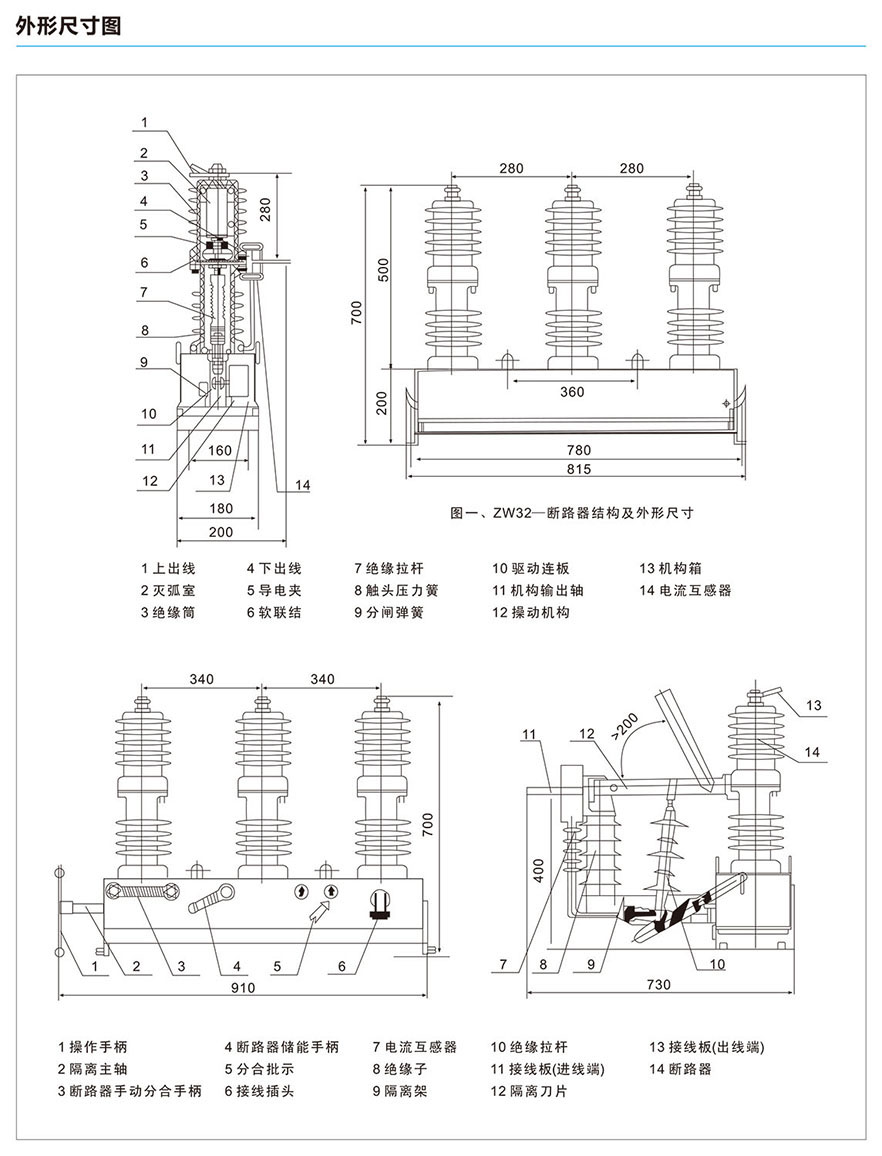 XBKW0(ZW20-12)户外高压真空断路器