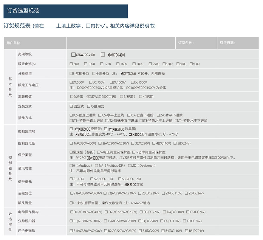 XBKW7DC直流万能式断路器