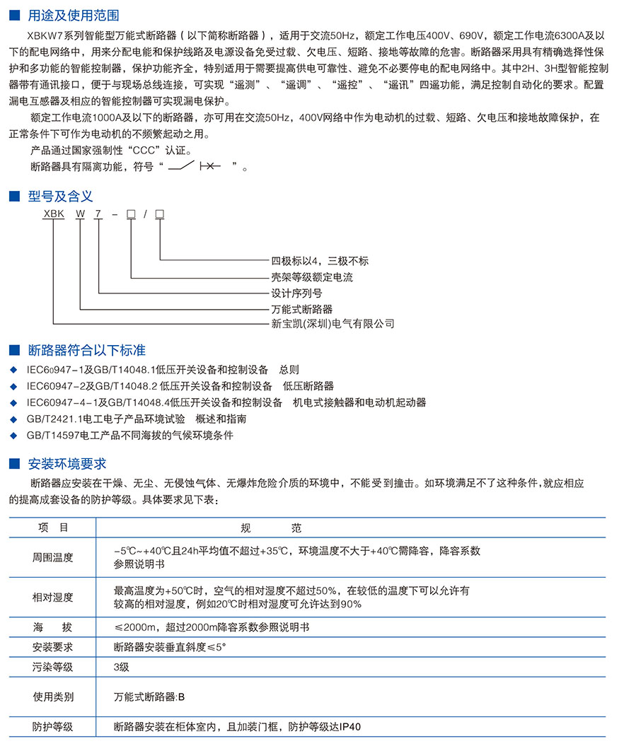 XBKW5智能型万能式断路器